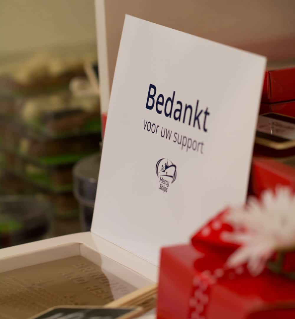 Als afsluiting van de avond vertellen Rob en Arend over het vervolg van the Mercy Ships Network. Het doel is om 100 partners aangesloten te hebben bij het netwerk aan het eind van 2021. Een ander doel van het netwerk is om projecten te financieren via een zogezegde ‘projectenpot’. Het eerste project dat door het netwerk bekostigd is, is een ziekenhuisbed van 15.000 euro. Een van de volgende doelen met de ‘projectenpot’ is om een van de cabins op de Global Mercy te adopteren. In het voorjaar kunt u zelf een van die cabins bewonderen als de Global Mercy ons eigen Rotterdam met een bezoek vereerd.