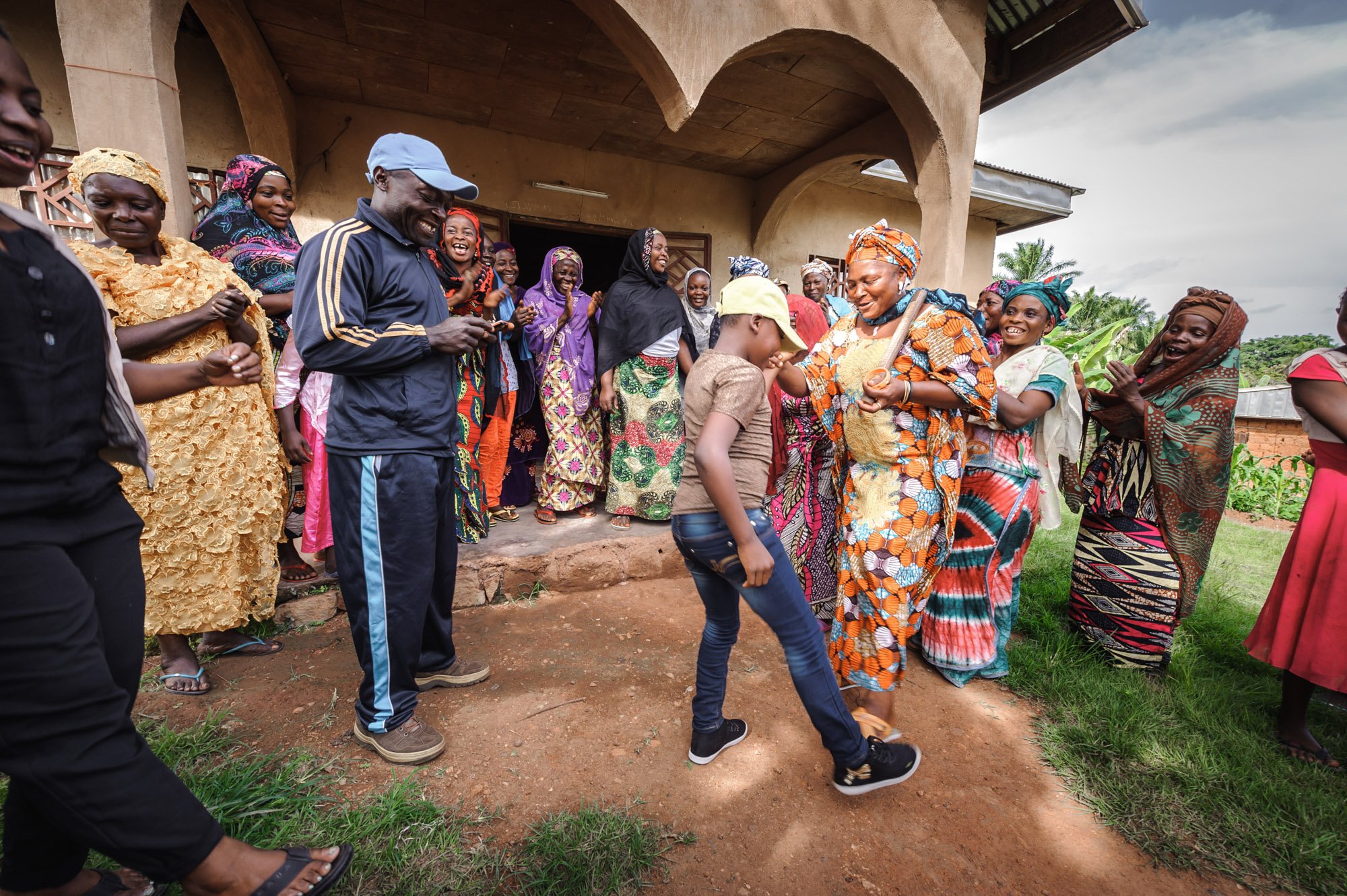 Uiteindelijk keerde hij terug naar huis waar hij weer met twee benen op de grond kon staan, iets wat zijn gemeenschap in jaren niet had gezien. Hun blijdschap was meer dan alleen het vieren van de grote terugkeer – het was een viering van de nieuwe toekomst die hij voor zich had! “Voorheen kon hij niet met zijn vriendjes spelen, hij vond het moeilijk om te lopen en hij kon niet elke dag naar school omdat die twee kilometer verderop was,” zei Abdoulai. “Nu gaat hij elke dag naar school en loopt hij met zijn vijf broers. Hij houdt ervan om elke dag met de bal te spelen, in bomen te klimmen en te gaan zwemmen.”