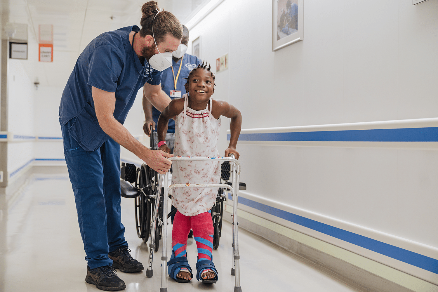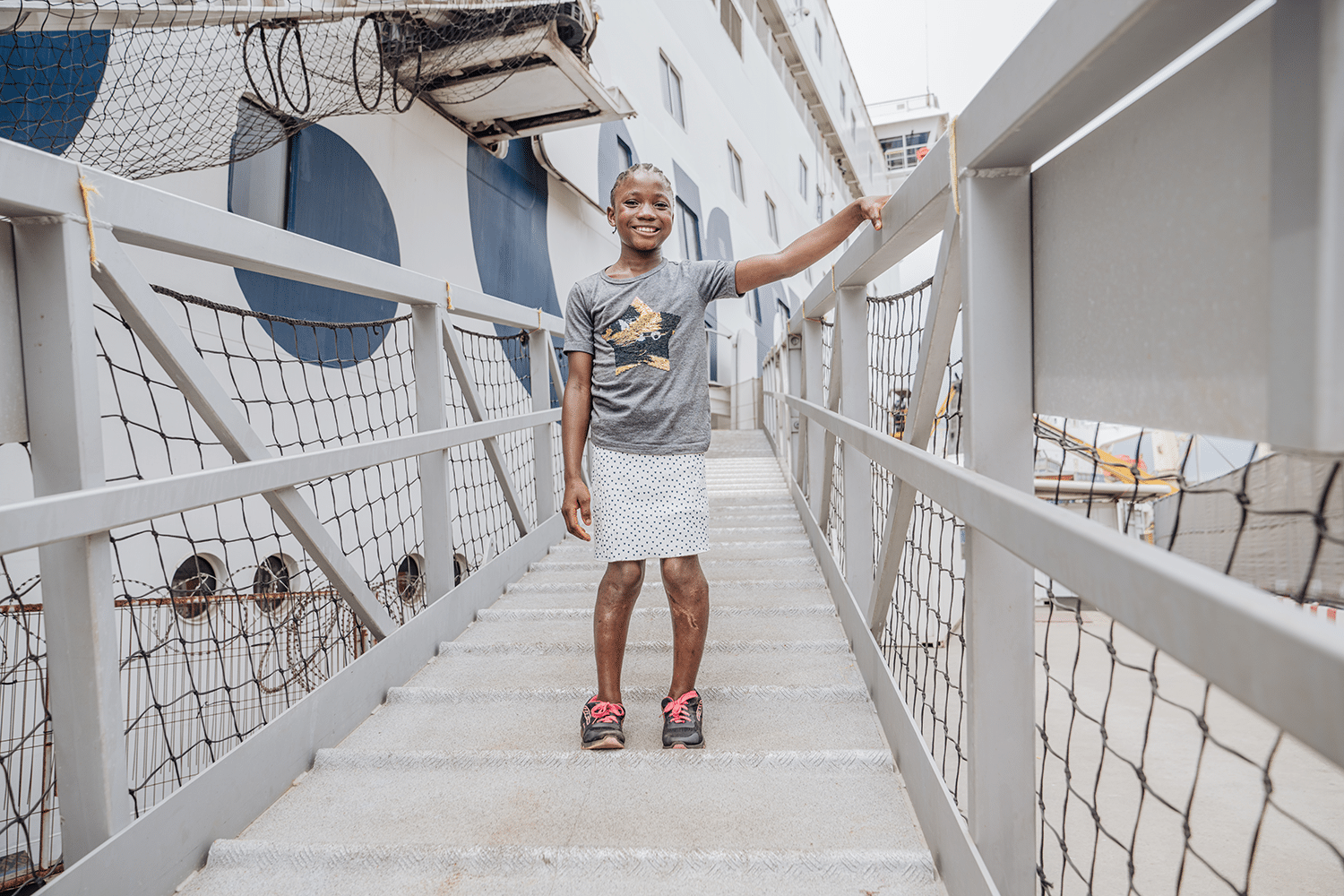 In 2023 is het zover. Joseph brengt zijn nichtje meteen naar het dichtstbijzijnde aanmeldcentrum. Ze zijn dolgelukkig als blijkt dat Fudia in aanmerking komt voor een operatie. Vier uur lang zijn de vrijwillige chirurgen aan boord van de Global Mercy aan het opereren. Als ze uit de narcose komt zijn niet alleen haar benen recht: ze is ook langer. 14 centimeter maar liefst!