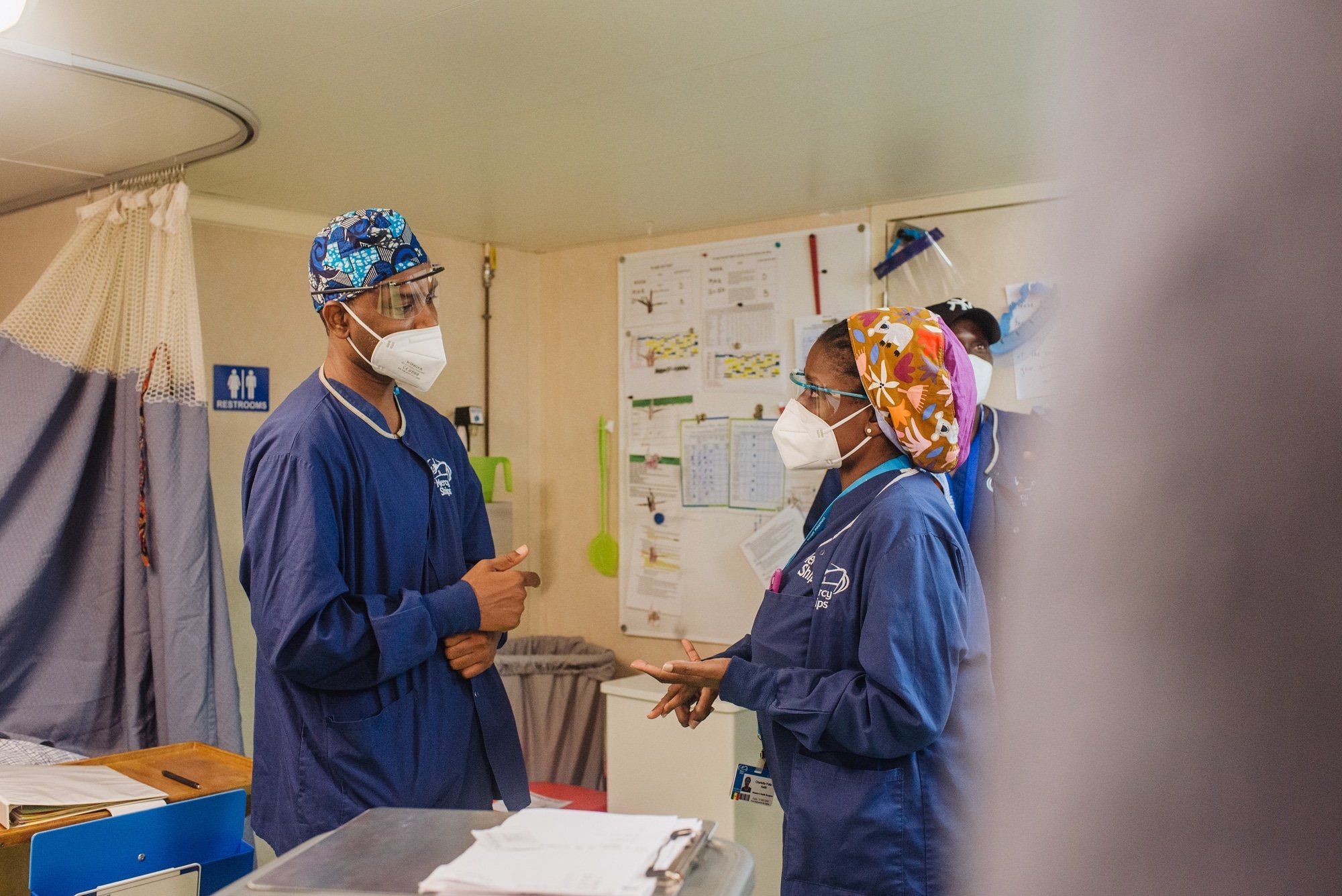 Als onderdeel van het Mercy Ships programma voor medische capaciteitsopbouw (MCB) was Dr. Polle-Kaliti onlangs mentor van Dr. Abdourahmane Diallo, een uroloog uit Senegal. Ze werkten nauw samen, waarbij Dr. Polle-Kaliti chirurgische vaardigheden deelde die zij in haar carrière had geleerd. Ze gelooft dat dit soort mentorschap en training net zo belangrijk zijn als het uitvoeren van een operatie. ‘Je wilt niet alleen een paar vrouwen helpen en weer weggaan. Want deze vrouwen zullen over hun genezing vertellen en de anderen die niet wisten dat ze hulp konden krijgen, zullen ook komen. Het feit dat we lokale chirurgen kunnen opleiden om het stokje over te nemen, betekent dat we meer deskundigen hebben die het werk zullen voortzetten.’