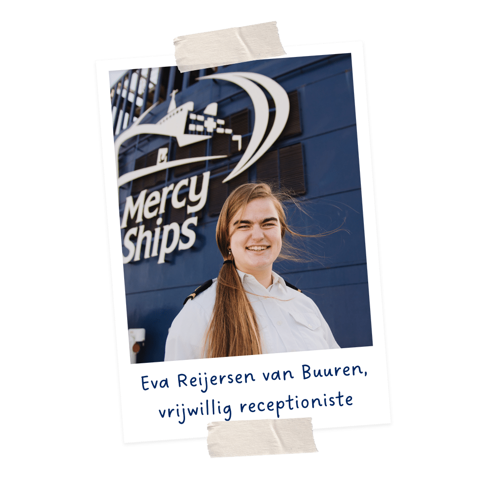 Yei is niet de enige die in spanning wacht hoe de operatie zal verlopen. De hele bemanning van het schip leeft mee. Eva Reijsersen van Buuren werkt op dat moment als vrijwillig receptionist aan boord en vertelt: ‘Umu is één van de patiënten die mij bij zal blijven. Omdat haar situatie erg kritiek was, hebben we op de dag van haar operatie de hele dag voor haar gebeden.’ Zo wordt Umu een bekend gezicht voor iedereen aan boord. Eva omschrijft haar als ‘een wonder’, en vervolgt: ‘Zij herinnerde ons eraan waarom we hier waren. Haar verhaal gaf ons hoop en moed om door te gaan.’