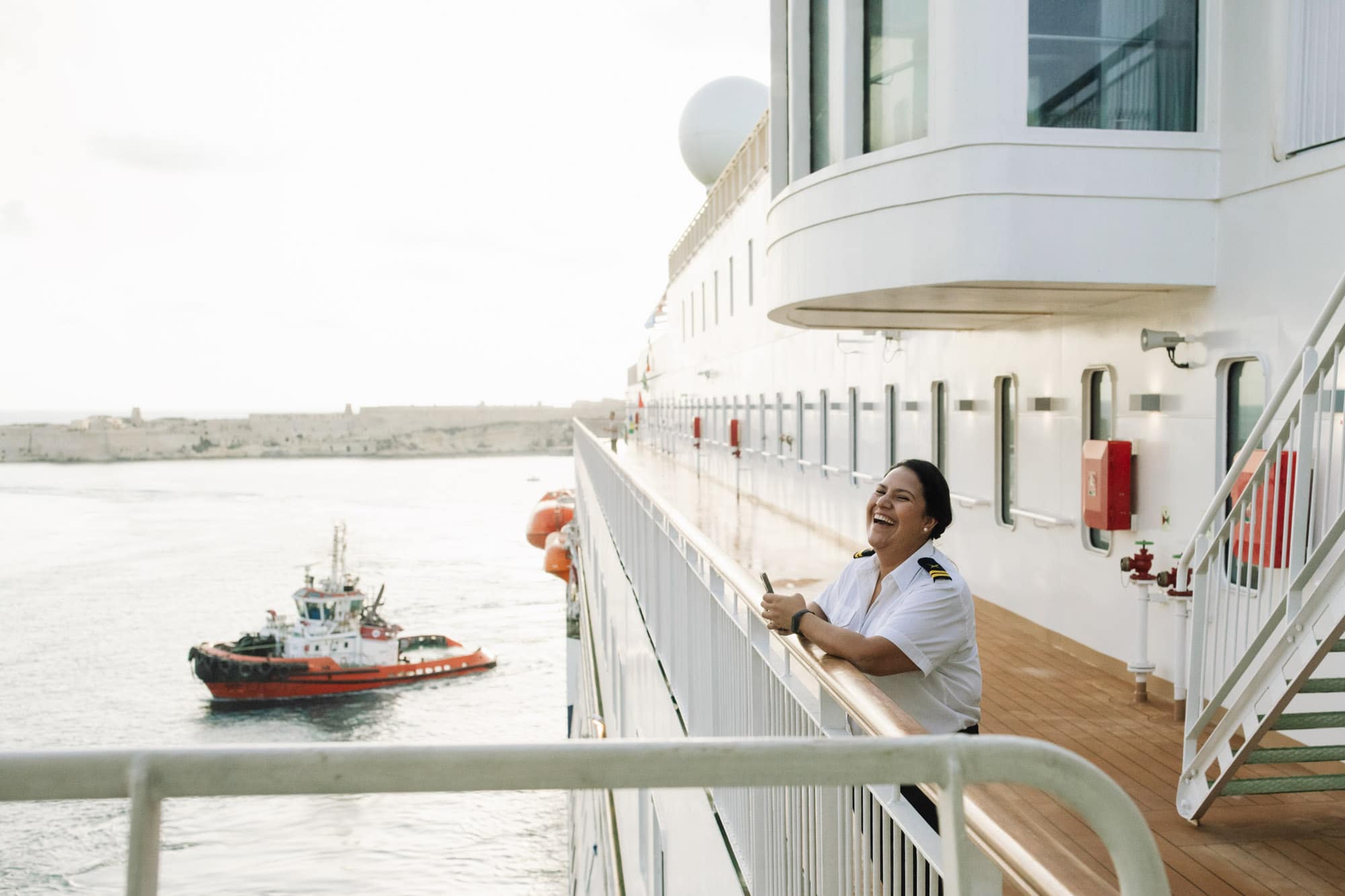 Ook al houdt ze zich in haar functie bezig met allerlei details, Daniela zegt dat de kern van haar werk niets te maken heeft met lakens, handdoeken of maaltijdschema’s. ‘Ik zie het als mijn belangrijkste taak om dat ‘thuis’-gevoel van het schip in stand te houden,’ vertelt ze. ‘Waardoor voelt het schip voor jou als thuis?’ Dat is voor iedereen anders. Voor sommigen, is het een extra kussen. Voor anderen een verjaardagstaart. Of foto’s aan de muur.