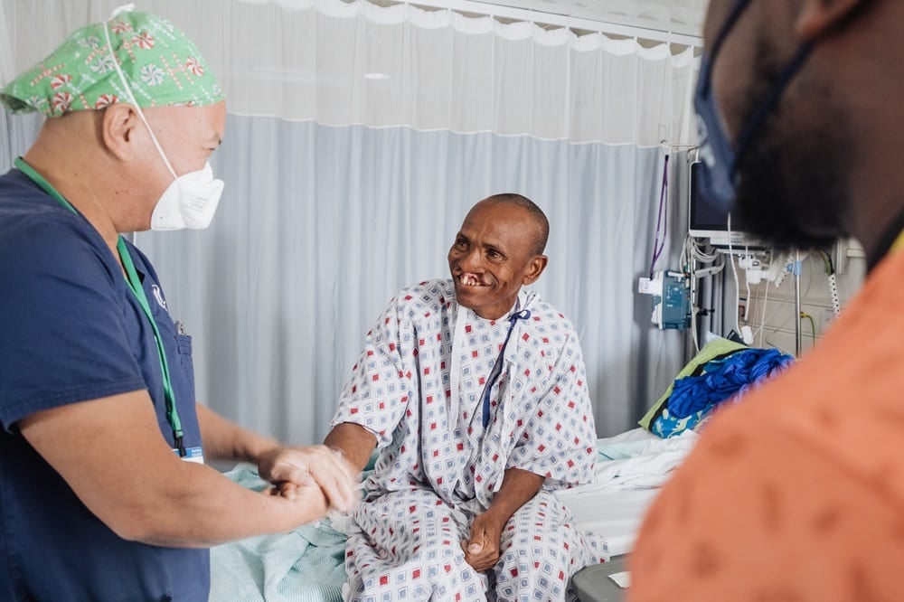 ‘In zijn ogen kun je de pijn zien van de vele negatieve ervaringen die hij in zijn leven heeft gehad. Maar wat mij in het bijzonder aan hem opviel, was dat hij een intrinsiek gevoel van eigenwaarde had,’ vertelde dokter Chong. Dit in tegenstelling tot veel andere volwassenen met een gespleten lip die hij in de loop der jaren heeft geopereerd. ‘Hij was zo innemend. Hij wilde je een verhaal vertellen. Hij wilde meer over je weten en hij wilde met iedereen contact maken.’