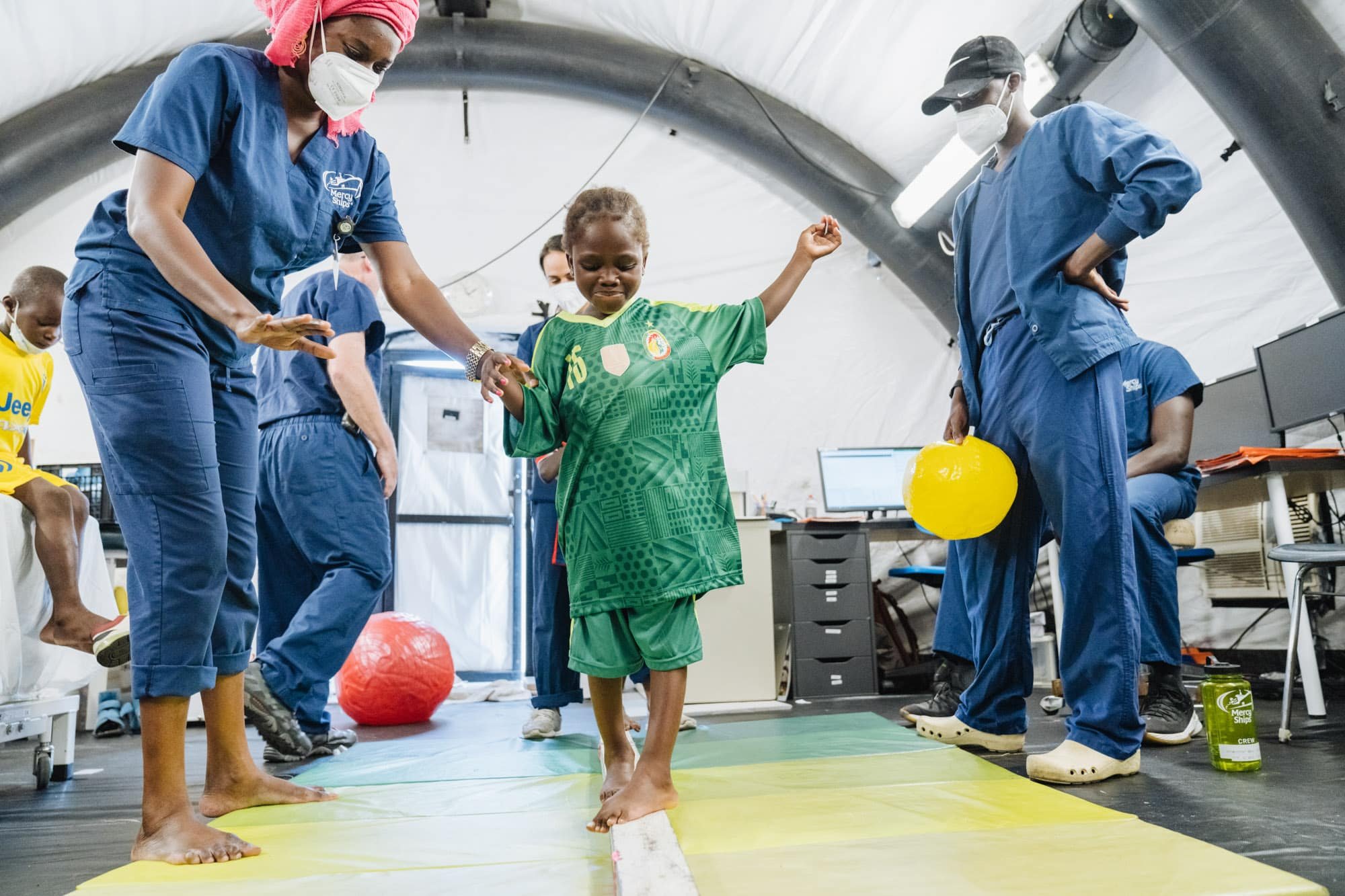 Na een succesvolle operatie waarin haar benen rechtgezet werden, begon Sira aan een twaalf weken durende revalidatie. Ze moest opnieuw leren lopen en opnieuw kracht in haar benen opbouwen. Dean Hufstedler, vrijwillig revalidatieteamleider, begon met bedoefeningen en ging langzaam over op oefeningen met een looprek. ‘Ik herinner me Sira omdat ze, als we haar uitlegden wat ze moest doen, haar benen uit bed zwaaide, haar voeten naar de grond liet glijden, zich vastgreep aan dat kleine looprekje en er gewoon vandoor ging,’ vertelt Dean.