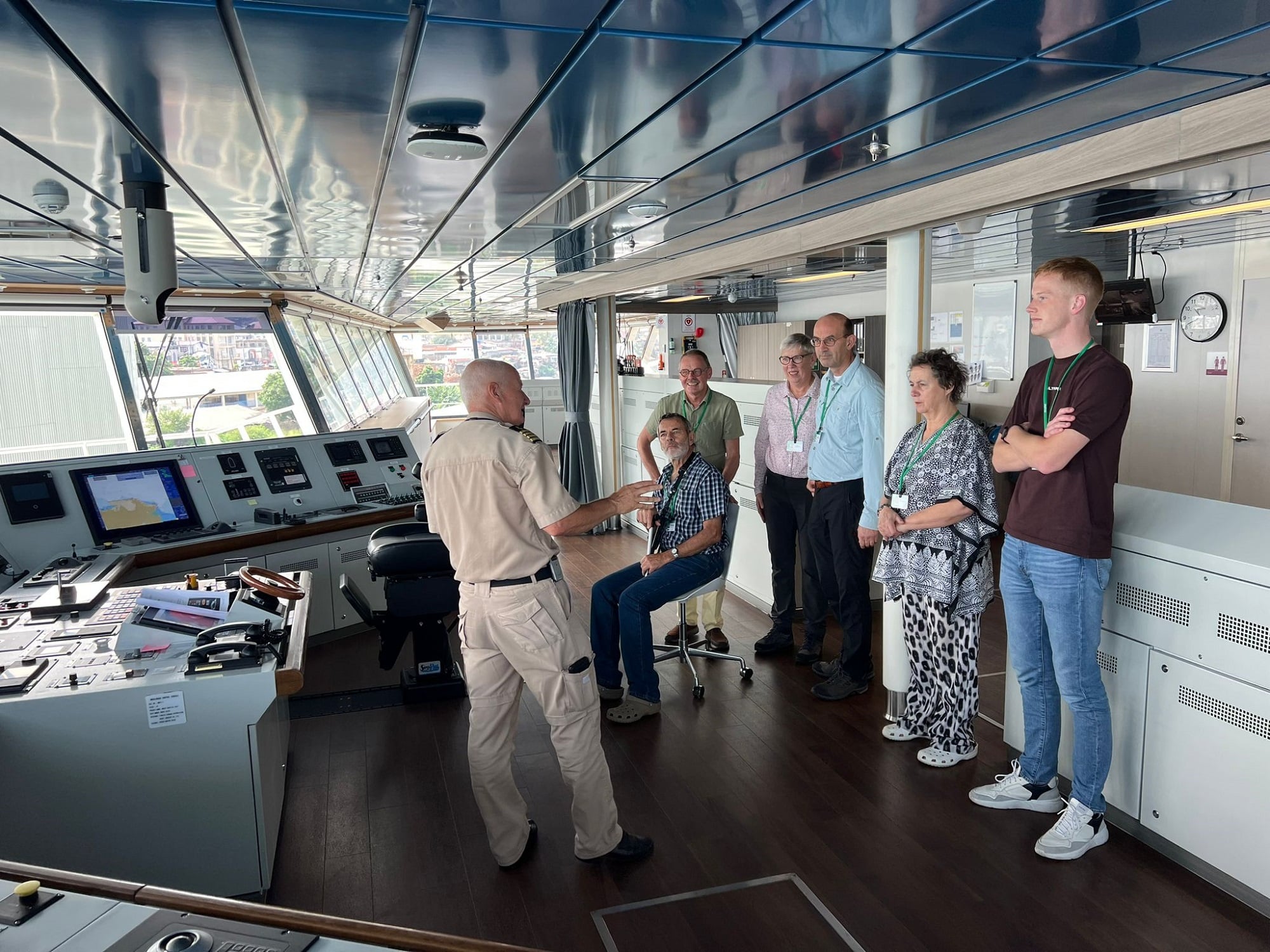 Een ziekenhuisschip is immens. De Global Mercy heeft 12 dekken! We bezochten het hele schip. Er waren rondleidingen op de brug, in de operatiekamers, in de machinekamer, in de school en op de vrijwilligersdekken. We spraken onder andere met de kapitein, een technisch engineer en maar ook met de ziekenhuisdirecteur en patiënten.