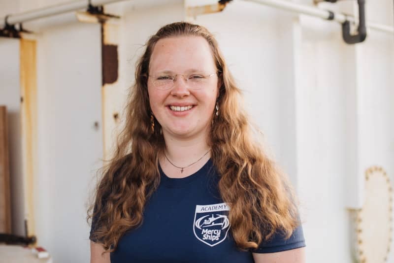 Tabitha is pas 23 jaar en geeft les aan boord van de Africa Mercy. Ze is onlangs afgestudeerd als docent aan de internationale pabo in Meppel. ‘Ik wilde niet per se gelijk in Nederland werken na mijn studie en daarom ging ik op zoek naar iets anders.’