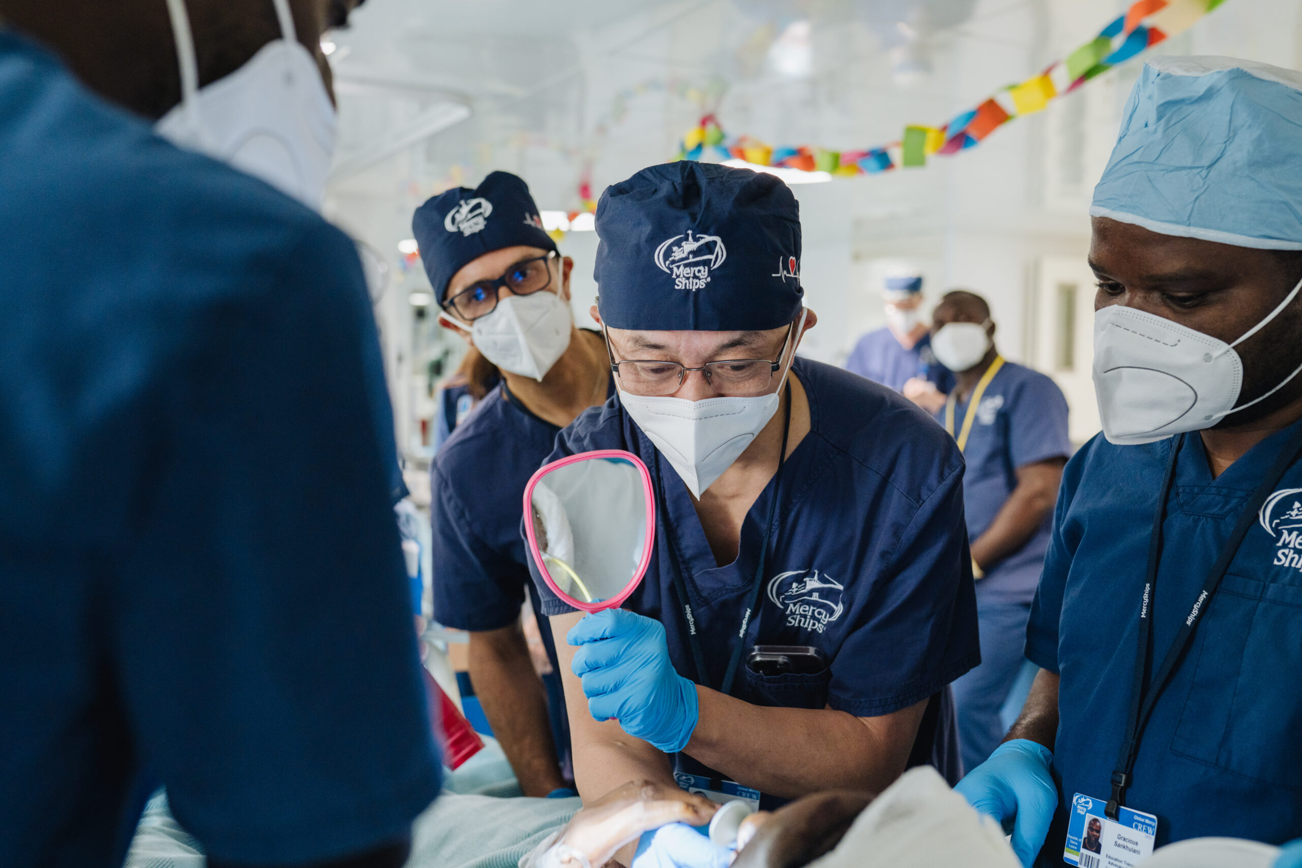 Hoewel zijn vaardigheden en ervaring indrukwekkend zijn, valt Dr. Cheng minstens zo op door zijn enthousiasme. Hij lacht vaak, maakt grapjes, en steekt iedereen een hart onder de riem. “Mijn energie, houding en motivatie krijg ik van Mercy Ships. Ik voel me als een schooljongen die net aan een nieuw vak begint en allerlei vaardigheden leert, zodat ik meer mensen kan helpen. Ik zuig alles op als een spons. Ik ben de zestig gepasseerd, maar ik voel me 18!”