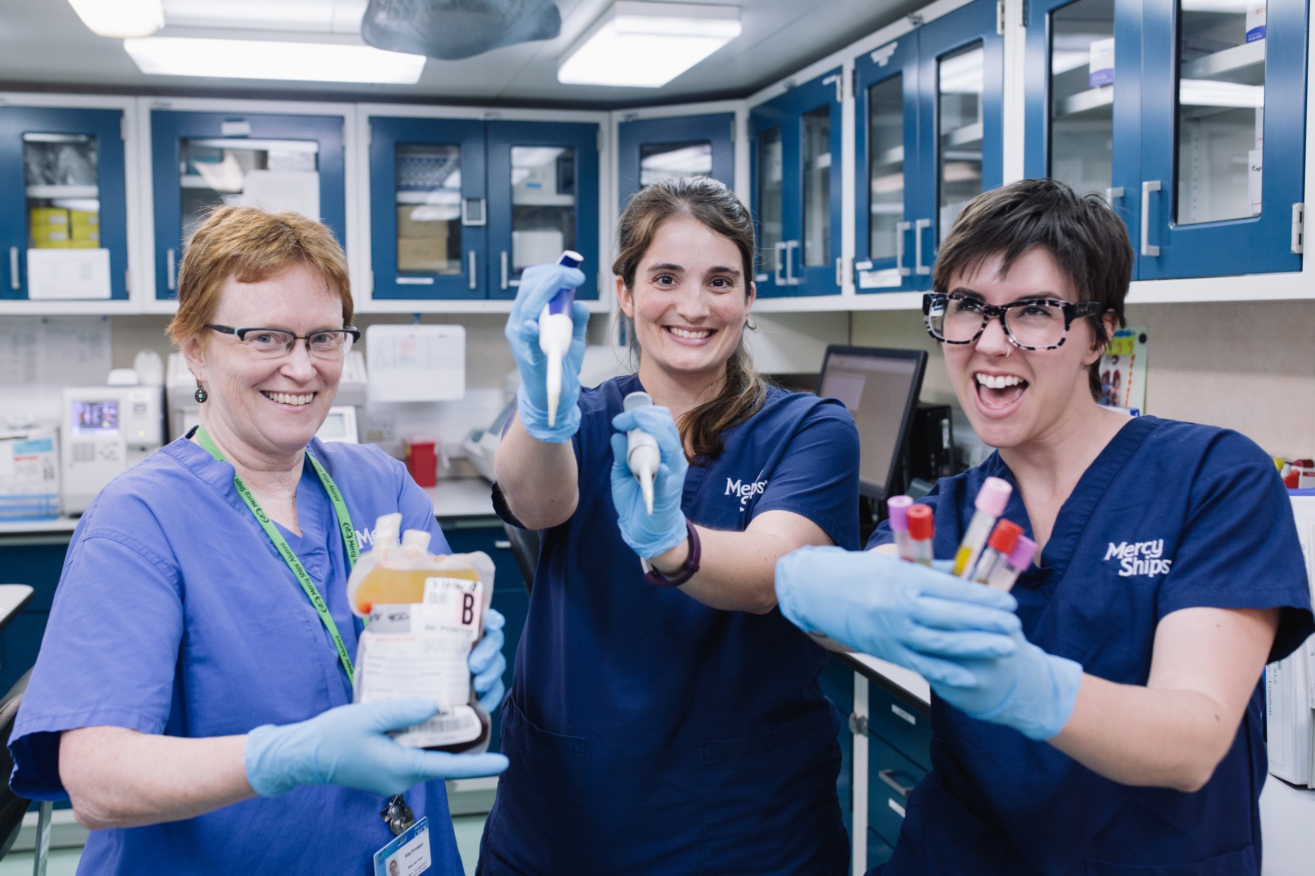 Met ons eigen medisch lab aan boord kunnen we klinische monsters ter plekke analyseren en bloed afnemen bij onze bemanning voor onze eigen bloedbank.