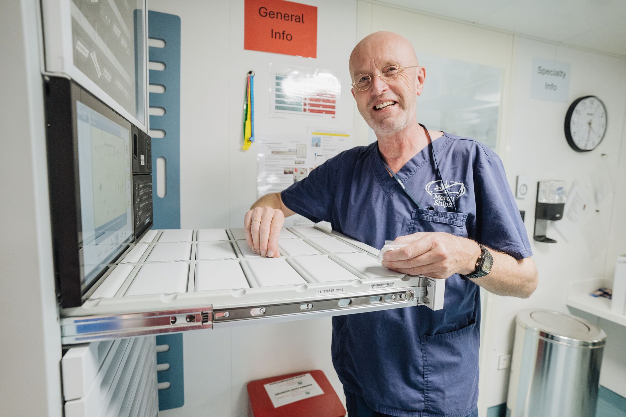 Jaarlijks werken meer dan 1300 vrijwilligers uit meer dan 50 landen aan boord bij Mercy Ships. Van chirurgen en medische staf tot de kapitein, koks, geluidstechnici, docenten, elektromonteurs, enzovoort. Aan boord zijn meer dan 150 verschillende beroepen te vinden. Onze bemanning brengt een enorm palet aan specialiteiten mee om een verschil te maken in de landen waar we werken.