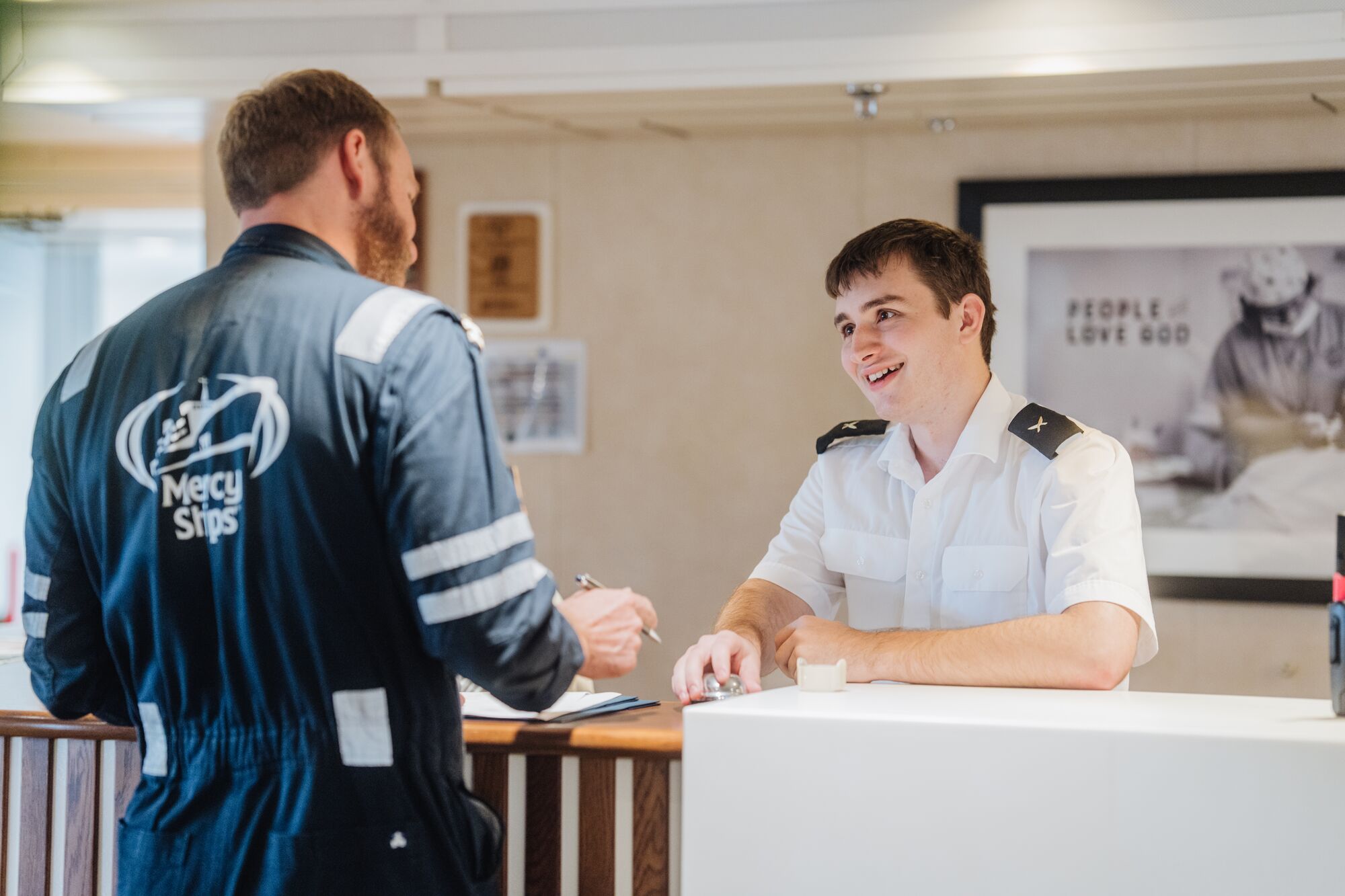 Jaarlijks werken meer dan 1300 vrijwilligers uit meer dan 50 landen aan boord bij Mercy Ships. Van chirurgen en medische staf tot de kapitein, koks, geluidstechnici, docenten, elektromonteurs, enzovoort. Aan boord zijn meer dan 150 verschillende beroepen te vinden. Onze bemanning brengt een enorm palet aan specialiteiten mee om een verschil te maken in de landen waar we werken.